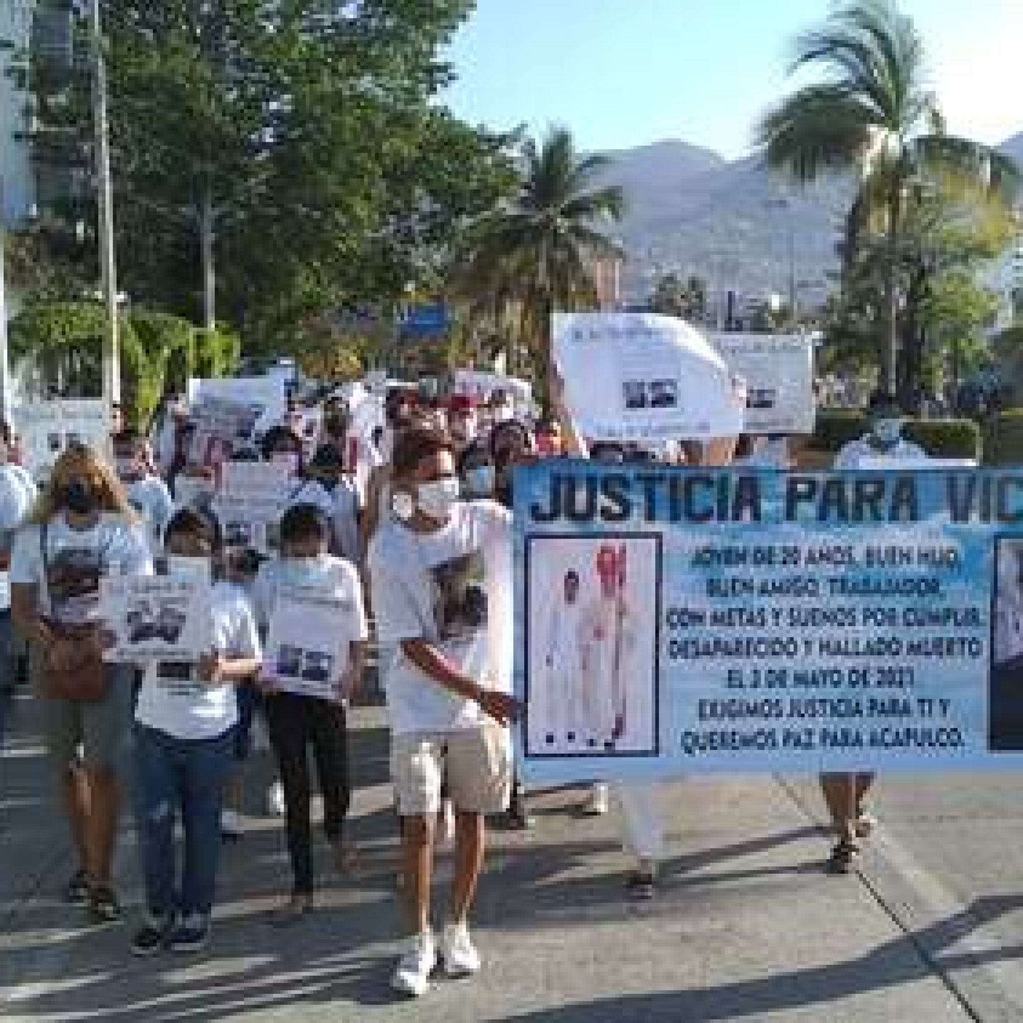 Acapulco, Gro., Familiares y amigos de Víctor Eduardo Salazar Pelagio marcharon la mañana de este domingo por la avenida Costera Miguel Alemán, desde el parque Papagayo al zócalo de Acapulco, para exigir castigo a los responsables de su secuestro y asesinato.