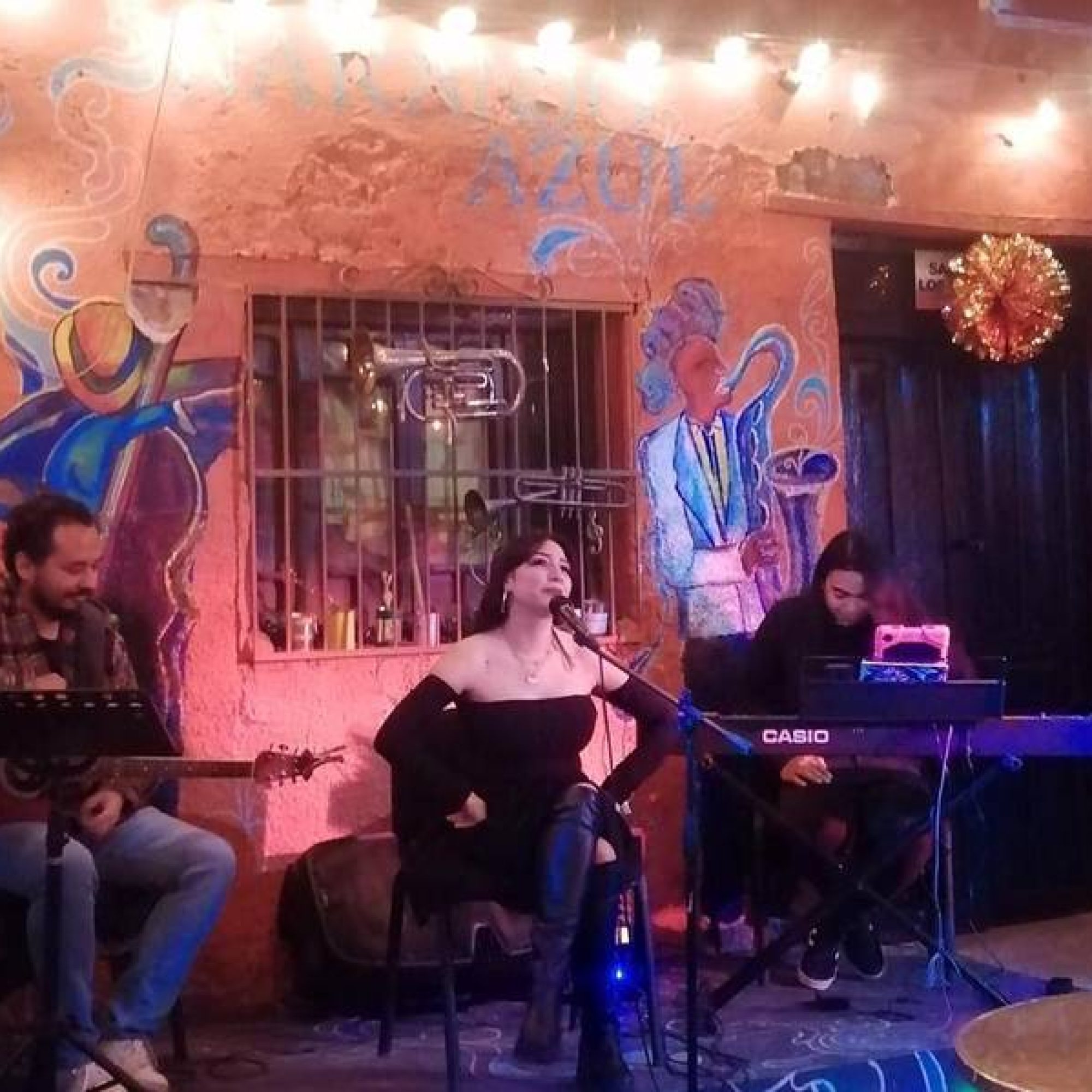 La joven estuvo acompañada del pianista Armando Tarango, el guitarrista Marco Tarín, asimismo, quien estuvo al frente de la organización y logística fue Pablo Merat, quienes gracias al equipo que formaron hicieron que el público pasara una velada agradable, donde las melodías “Un pedacito de cielo”, “Amarillo” fueron con dedicatoria especial, dentro del repertorio estuvieron también canciones en inglés de artistas reconocidos.